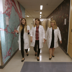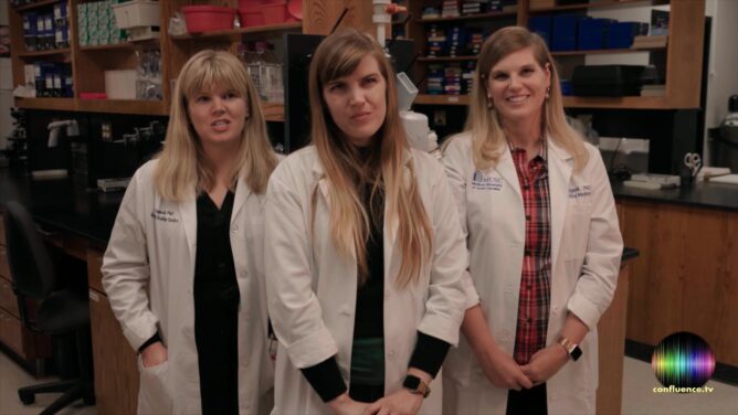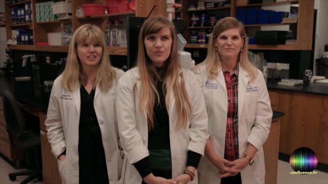 Sisters Mindy, Amy and Kristen Engevik are PhD research scientists whose individual and collective work revolves around the gastrointestinal tract, all towards the advancement of the GI field through collaborative Science. They are experts in immunofluorescence, a technique that literally lights up the visual data they examine under a microscope.