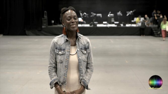 Nathalie Joachim is a Grammy-nominated composer, flutist, and vocalist whose music spans a broad range of genres including classical, pop, and indie rock. Delicate strains of the Haitian folk music of her childhood distinguish many of her unique compositions. Follow her collaboration with vocal ensemble Roomful Of Teeth as she joins them in residence at Mass MoCA.