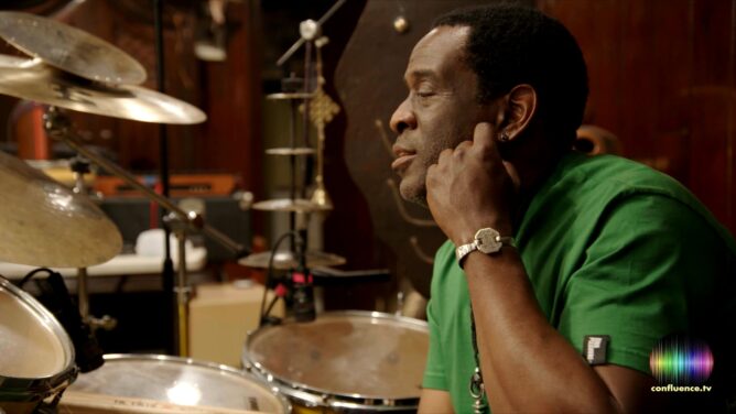Will Calhoun is an American drummer and a founding member of the Grammy-winning rock band Living Colour and a highly influential figure in the world of percussion. He is celebrated for his versatile drumming style, which incorporates elements of jazz, funk, and world music. Along with saxophonist Stephon Alexander and bassist Melvin Gibbs, he is part of the jazz band God Particle, which is featured in Confluence.