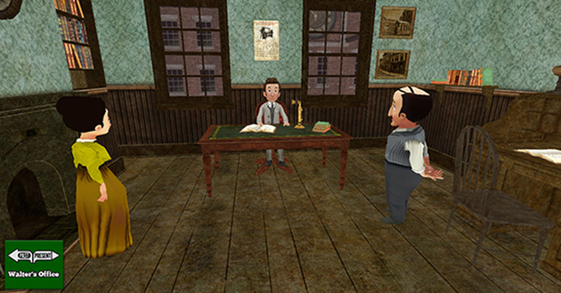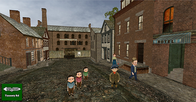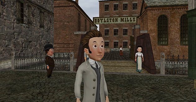 When you play Past/Present you'll be transported back a hundred years to Eureka Falls, a gritty New England mill town. You'll walk its streets, from the slums of Tannery Road to airy, bright Eureka Heights, home of the town's richest families. You'll enter the imposing Boylston Mill, either to toil in its deafening loom rooms or juggle orders in the executive offices. And you'll meet a colorful cast of characters from across the social spectrum.