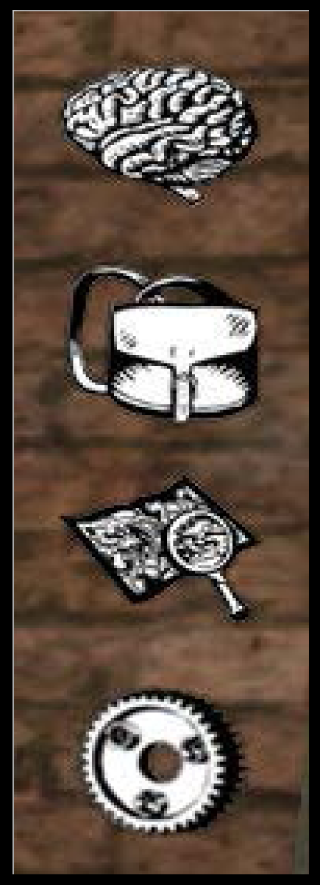 The Brain collects information and knowledge that's been acquired by the player. It contains pieces of Evidence, Goals and Objectives, People the player has met and a Glossary of unfamiliar words used in the game.